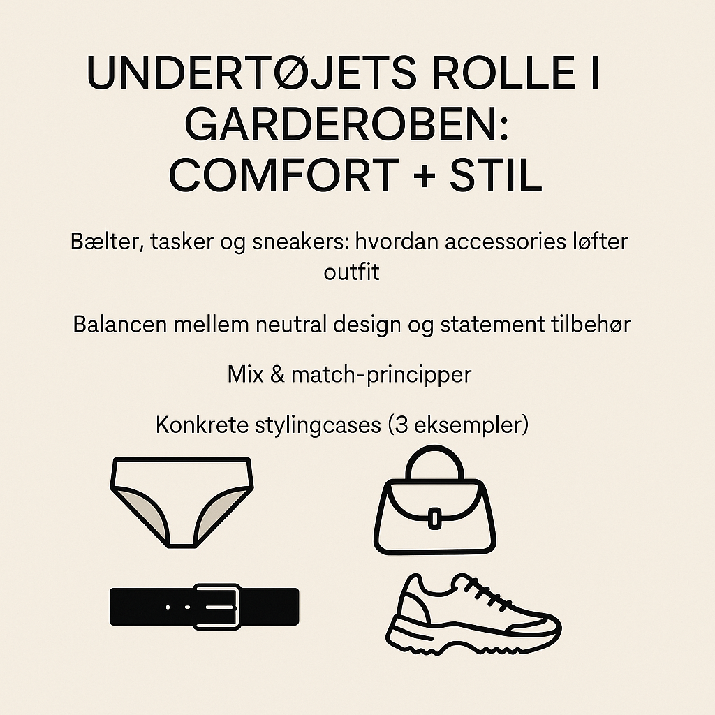 Undertøj og accessories er de to usynlige motorer i en garderobe: det ene ligger tættest på huden og afgør, om du føler dig tilpas, det andet sidder yderst og afgør, om dit outfit føles gennemført. I denne artikel får du en praktisk guide til, hvordan du kombinerer komfort og stil, så dit tøj fungerer i virkeligheden: på arbejdet, til fest og i en travl hverdag.